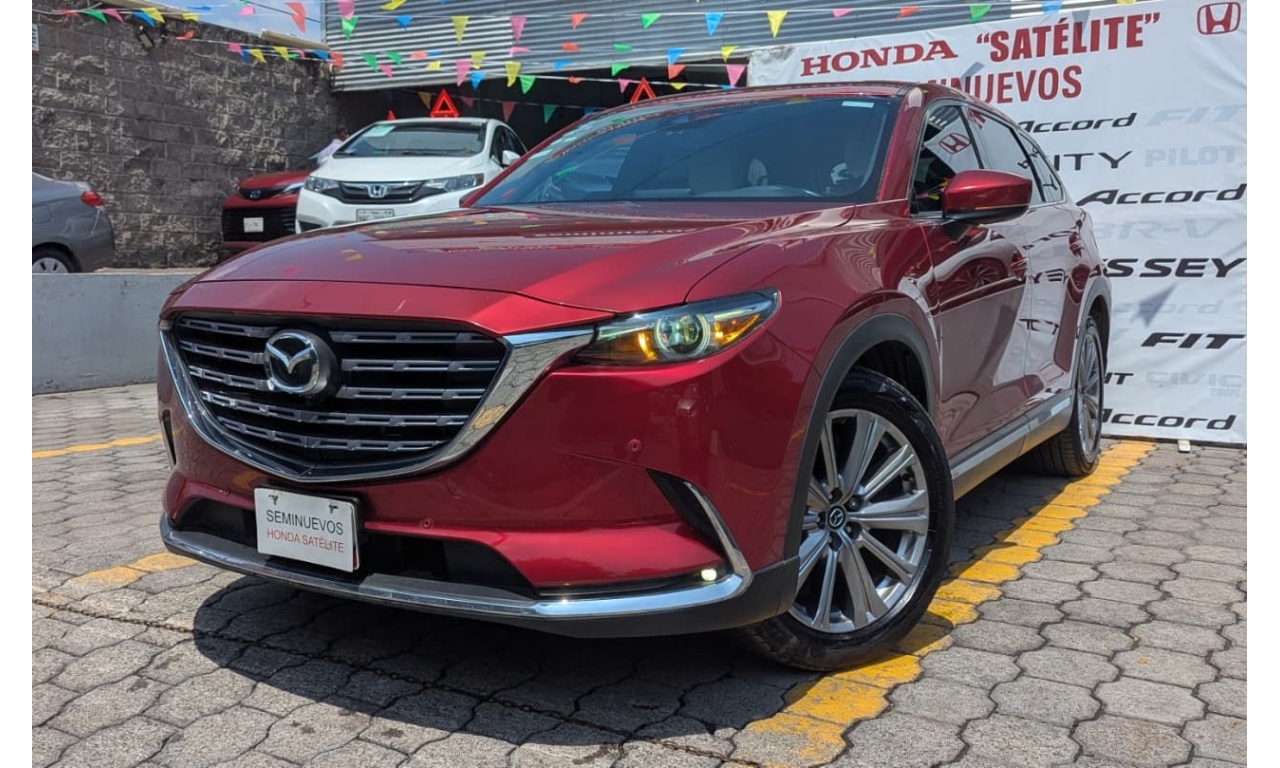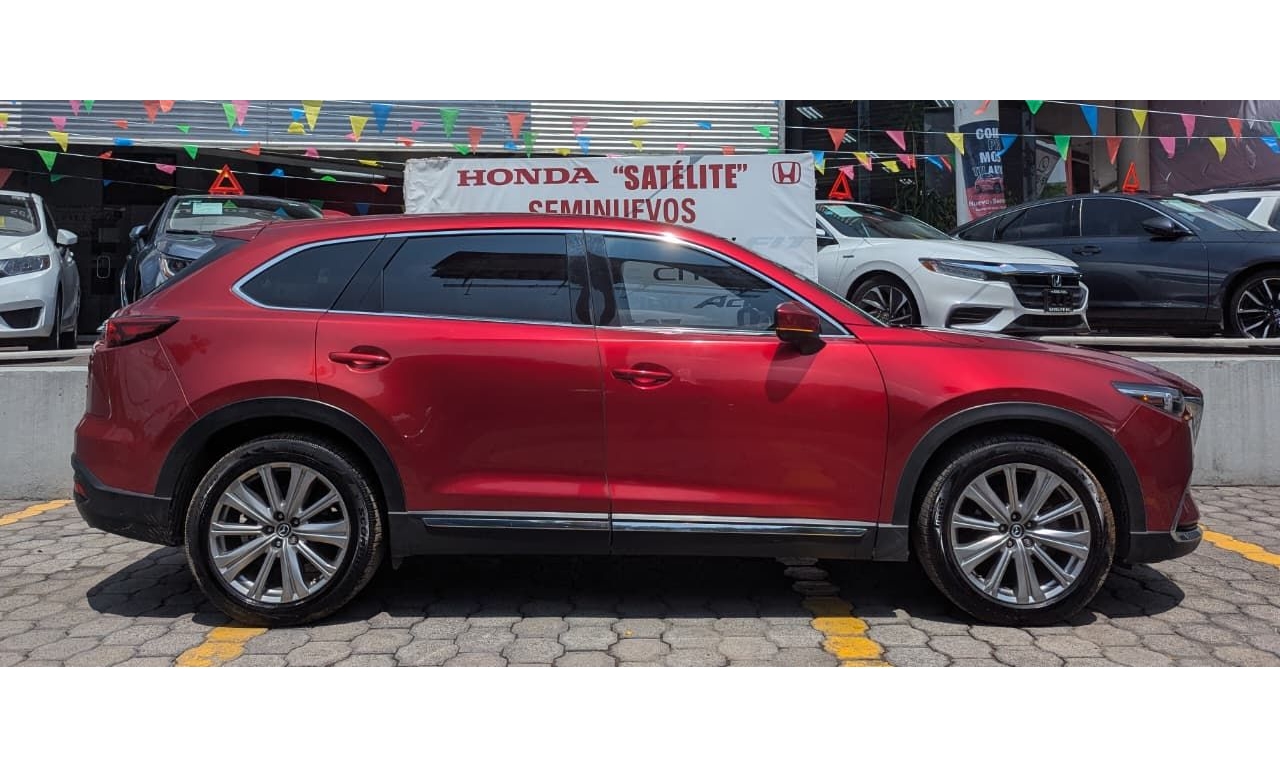 Mazda CX-9 Signature 2022 en color Rojo. Motor 2.5 Lt. Turbo. Con 225Hp, transmisión automática y dirección asistida.