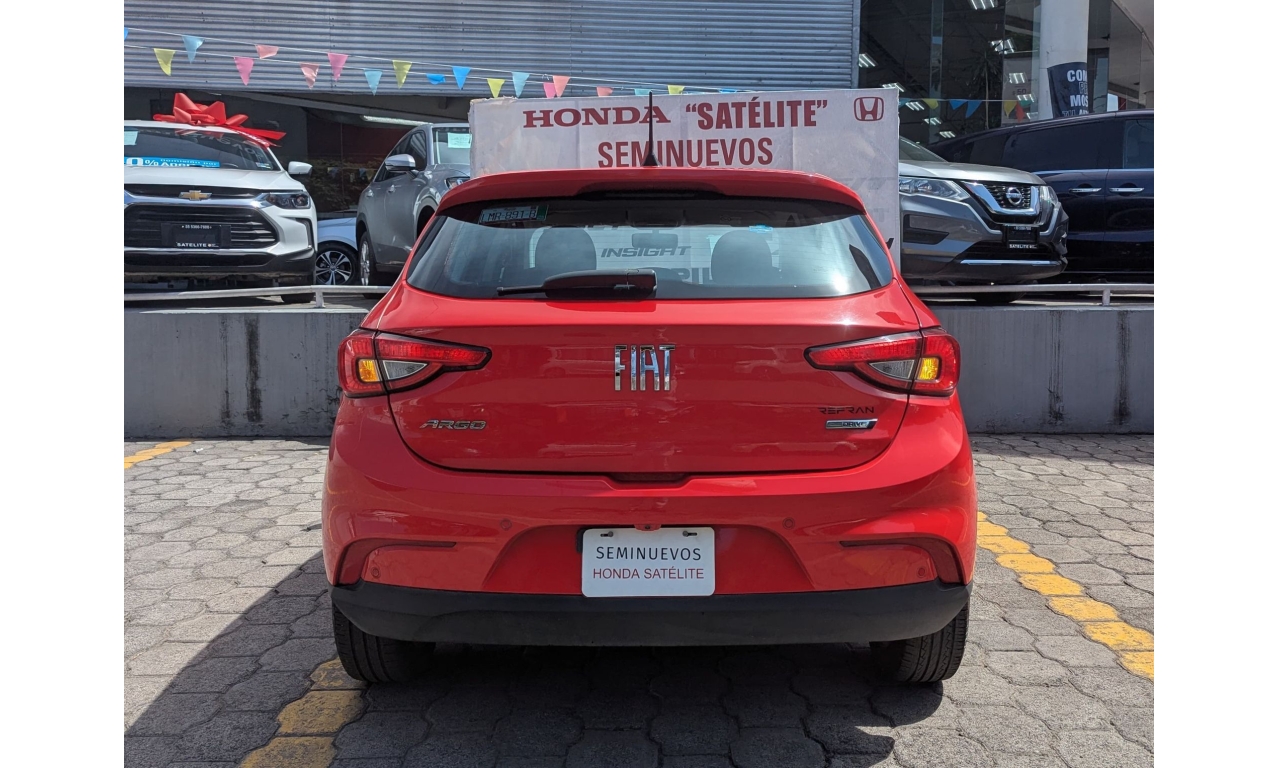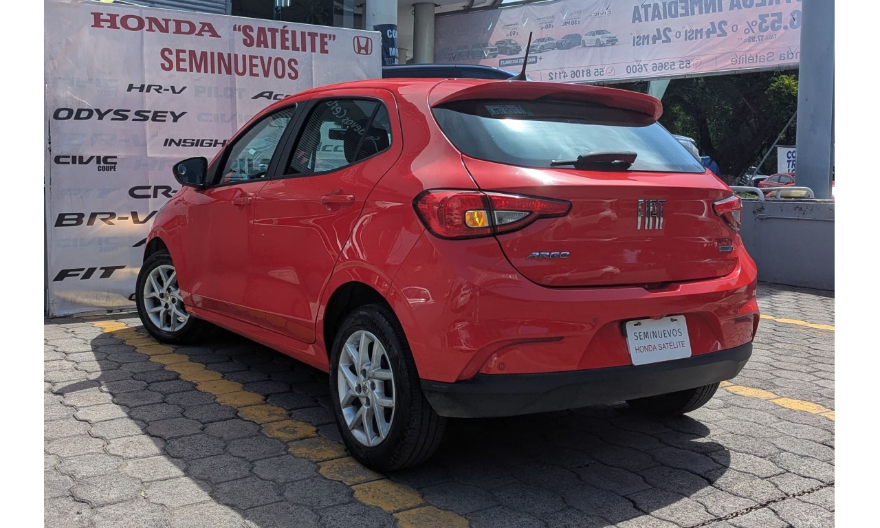 Fiat Argo Drive Plus Mt 2023 en color Rojo. Motor 1.3 Lt. Con 97 Hp, transmisión manual y dirección asistida.