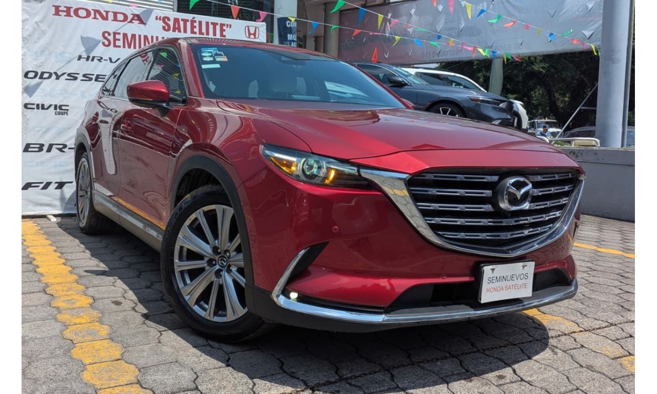 Mazda CX-9 Signature 2022 en color Rojo. Motor 2.5 Lt. Turbo. Con 225Hp, transmisión automática y dirección asistida.