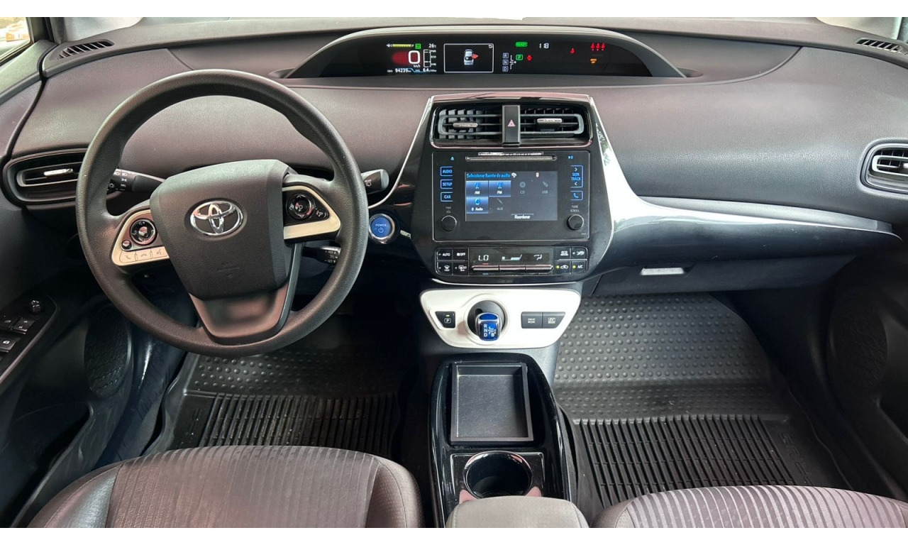 PRIUS - 2017 -Sistema Híbrido: Un motor de gasolina de 1.8 litros se acopla a motores eléctricos, generando una potencia combinada de 121 caballos de fuerza. -Transmisión Automática (CVT): Proporciona una aceleración suave y contribuye a la eficiencia del vehículo. -Frenado Regenerativo: El sistema regenera energía eléctrica al frenar, recargando la batería y mejorando la autonomía. *Tecnología y Conveniencia -Pantallas y Conectividad: Incluye una pantalla táctil y una pantalla multiinformación para el conductor, además de conectividad Bluetooth. -Llave Inteligente: Permite el acceso al vehículo y el encendido del motor mediante un botón, eliminando la necesidad de la llave física. -Cámara de Reversa: Facilita las maniobras de estacionamiento.